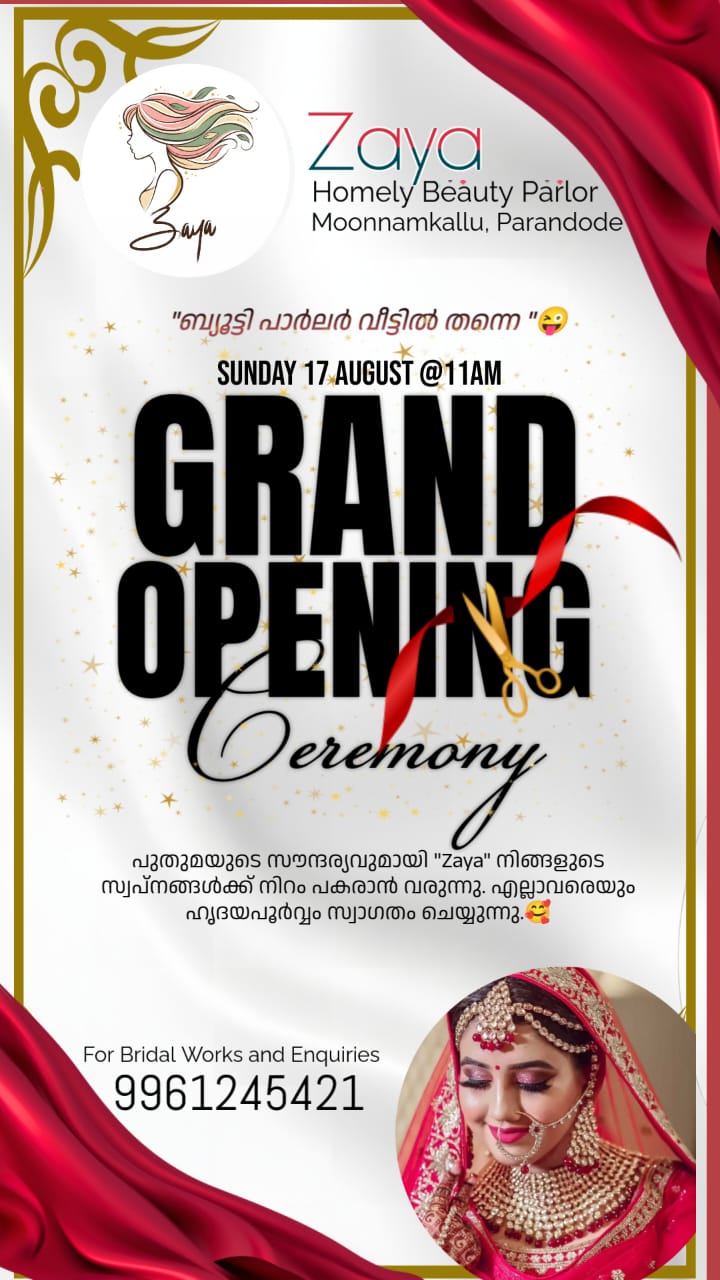 Zaya is conveniently located in Moonnamkallu Parandode, providing a welcoming atmosphere for ladies seeking beauty services.